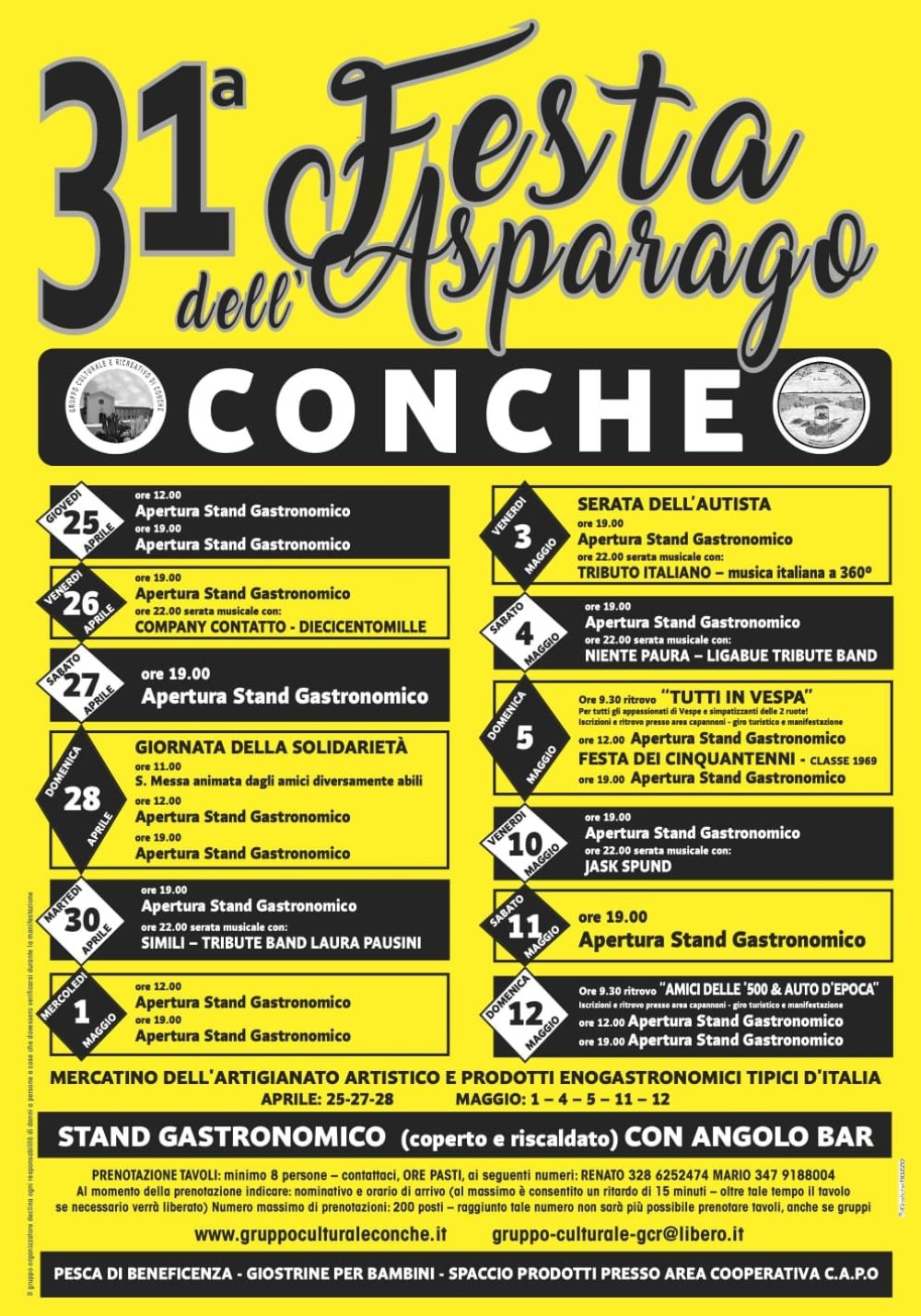 Il Gruppo Culturale Ricreativo di Conche è lieto di annunciare le date della 31ª Festa dell’Asparago di Conche a Codevigo.
