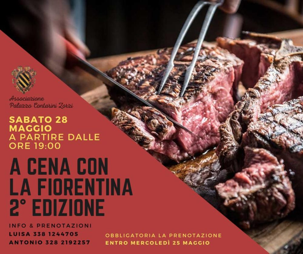 L’Associazione “Palazzo Contarini Zorzi” organizza la seconda edizione dell’evento “a cena con la fiorentina” che si terrà a palazzo il 28 maggio 2022 a partire dalle ore 19.00