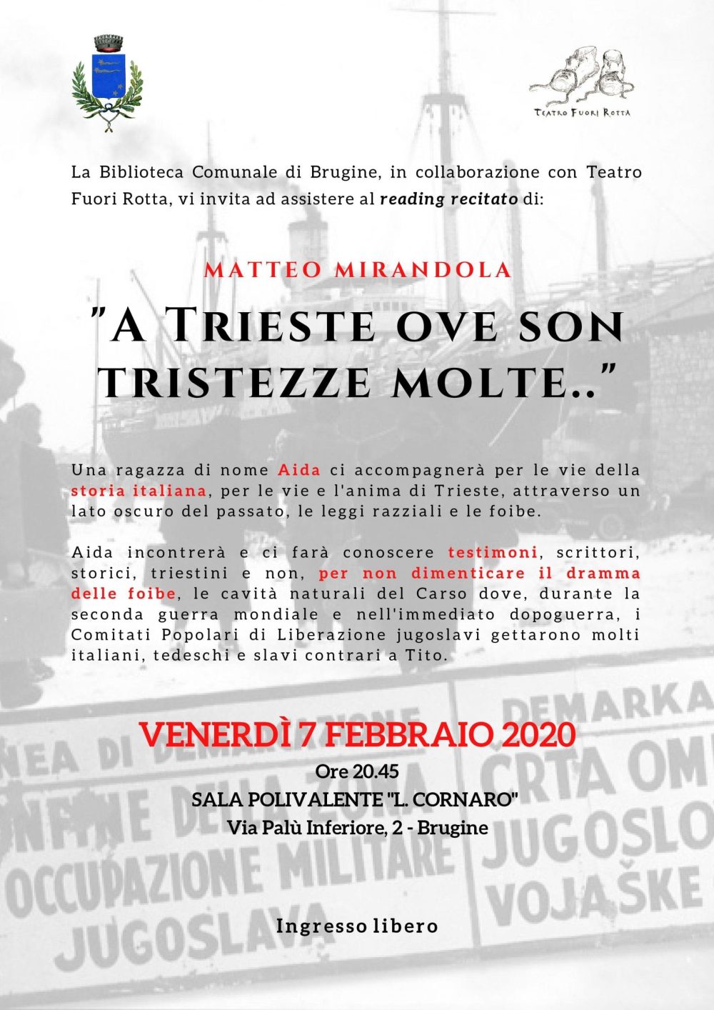 Venerdì 7 Febbraio alle 20,45 presso la sala Polivalente “E. L. Cornaro” in occasione della giornata del ricordo, serata per non dimenticare le vittime delle foibe carsiche.