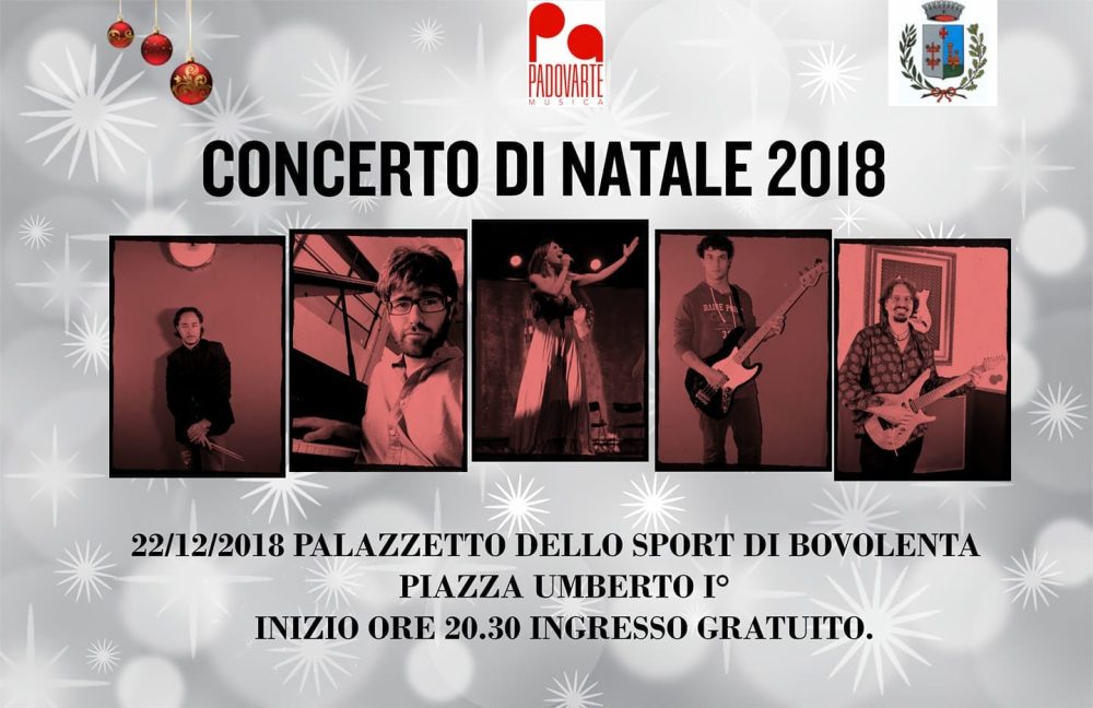 L’amministrazione comunale di Bovolenta organizza l’annuale Concerto di Natale che inizia alle ore 20.30 del giorno 22/12/2018 e si terrà presso la Palestra di Bovolenta per il consueto scambio di auguri di Natale.