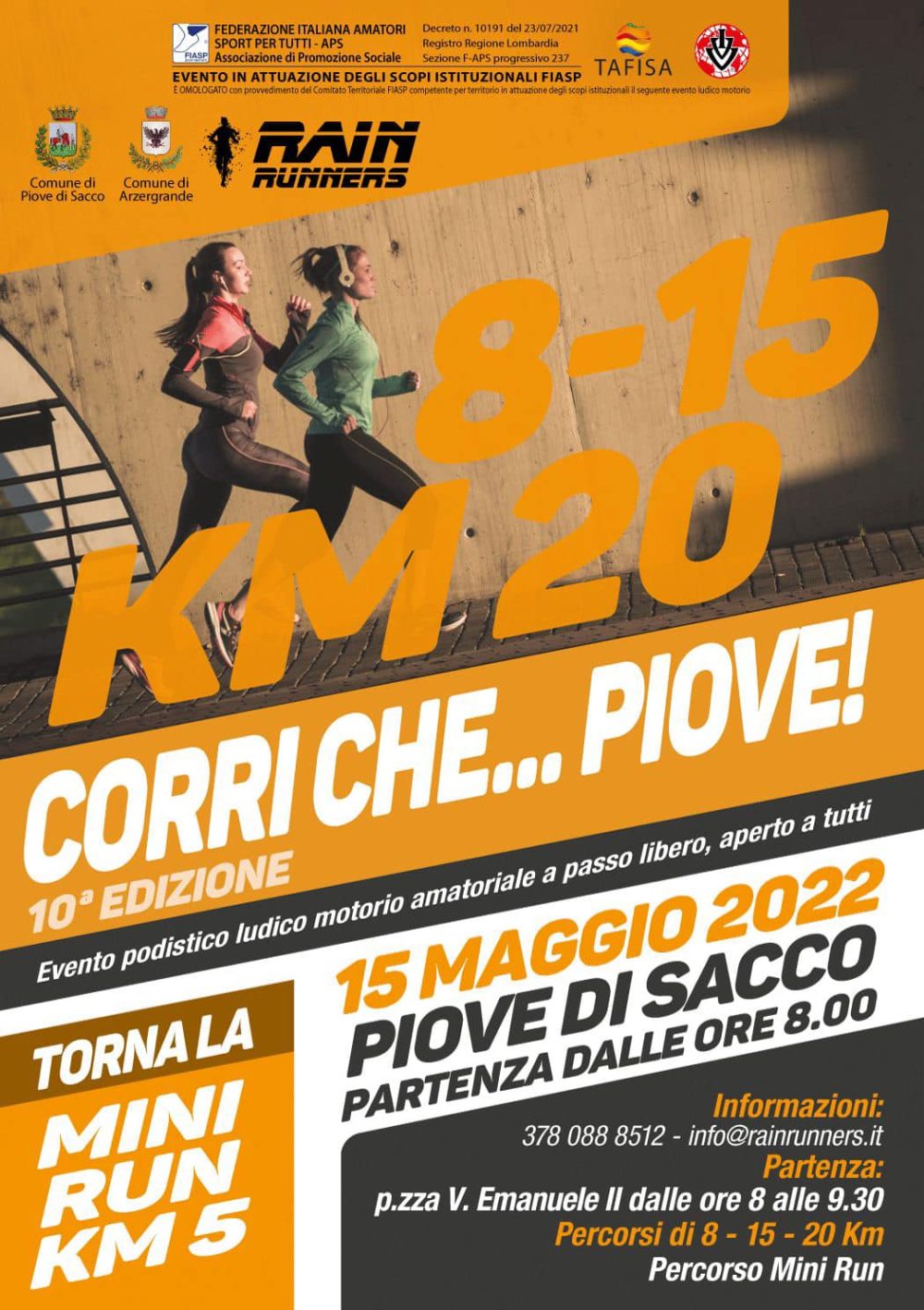 Per info e iscrizioni contattateci al numero 3394721591 oppure inviateci una mail a info@rainrunners.it