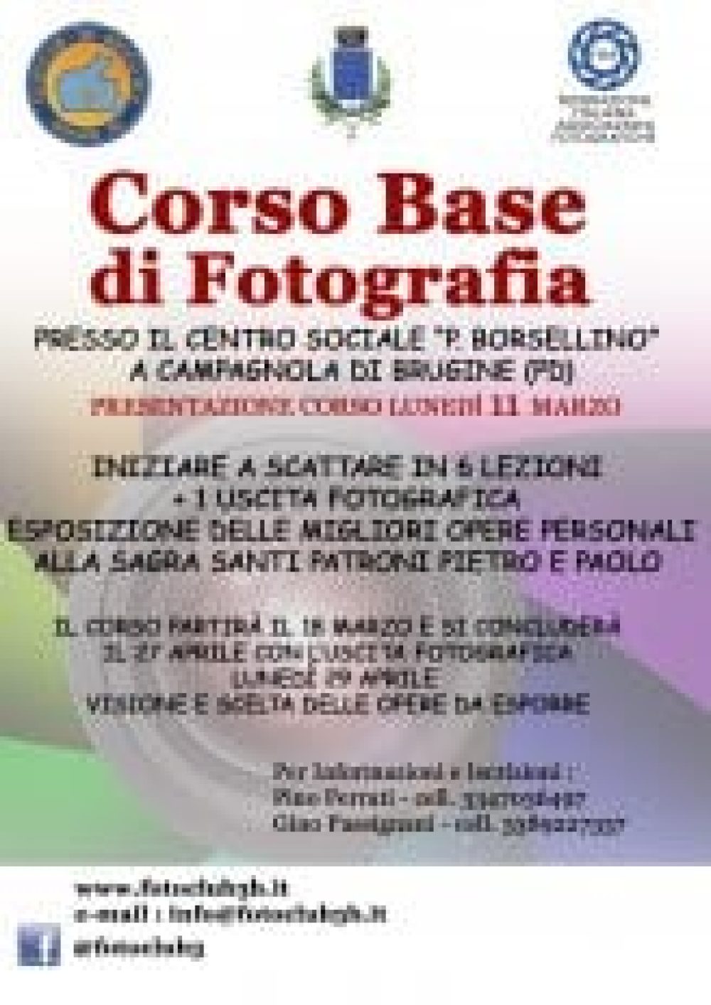 Lunedì 11 Marzo alle ore 21 presso la Sala Borsellino a Campagnola serata di presentazione del corso base di fotografia organizzato dal Fotoclub Bruco Blu