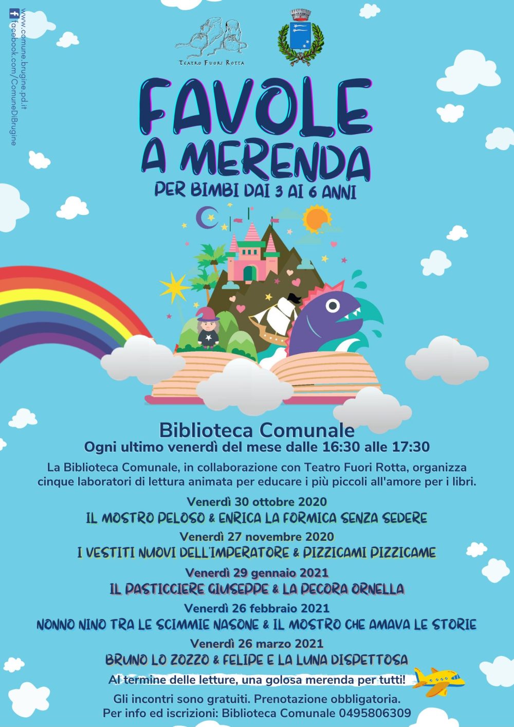 Letture animate e a seguire la consueta merenda, teatro Fuori Rotta vi aspetta in Biblioteca Comunale a partire da Venerdì 30 Ottobre, tutti gli ultimi venerdì del mese tra le 16.30 e le 17.30.