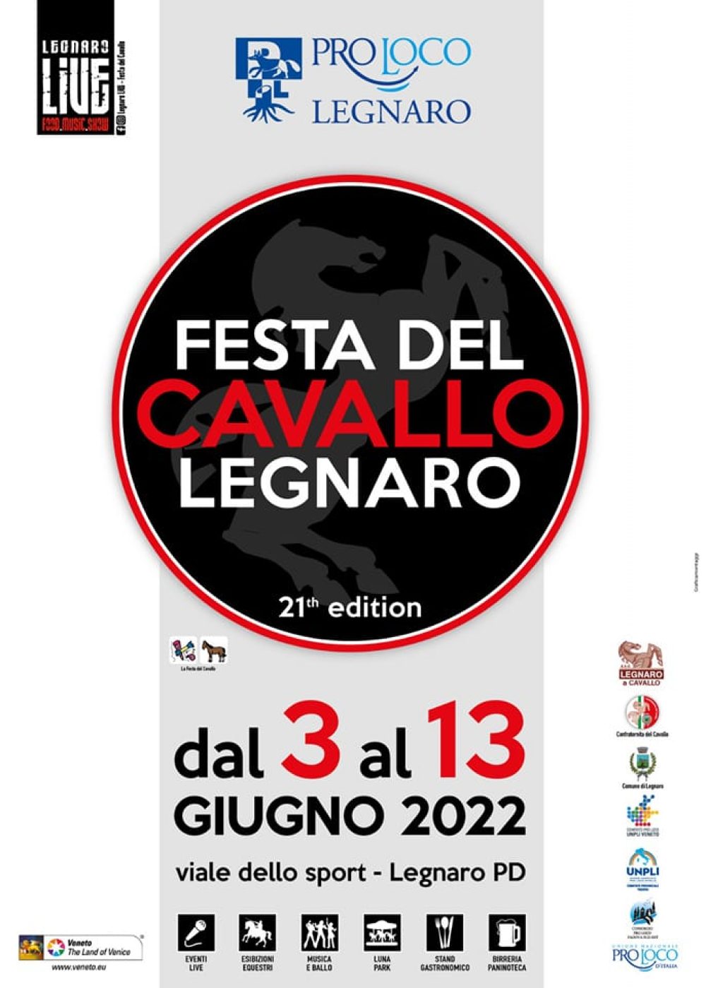 - Legnaro LIVE – Festa del Cavallo con spettacoli e musica live;
