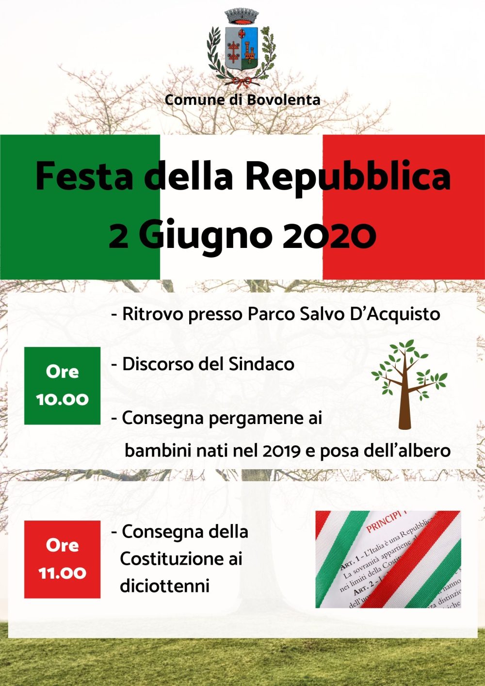 FESTA DELLA REPUBBLICA 2 GIUGNO 2020 a BOVOLENTA