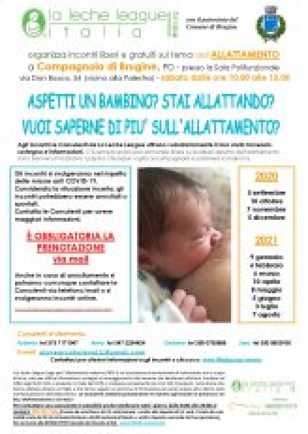 La Leche League in collaborazione con il Comune di Brugine organizza incontri liberi e gratuiti presso la Sala Polifunzionale N. Rocco a Campagnola.