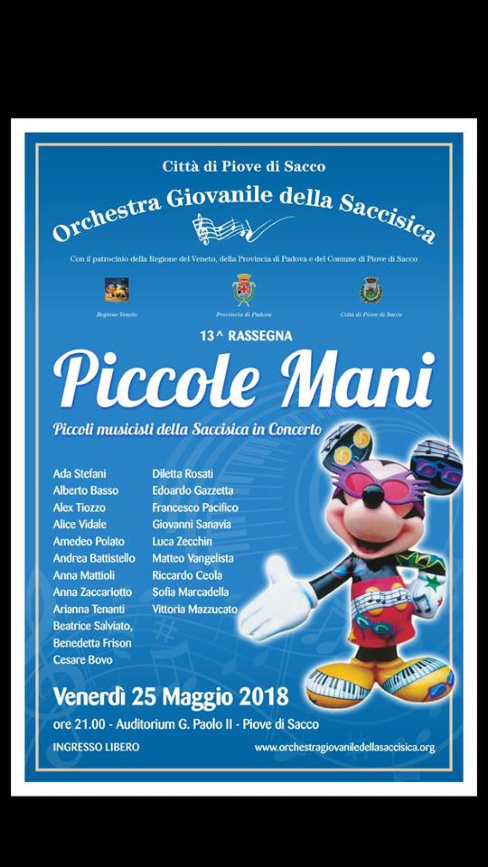 Associazione Orchestra Giovanile della Saccisica Vi aspettia Venerdì 25 maggio ore 20.45 in Auditorium G. Paolo II di Piove di Sacco per il concerto di giovani talenti under 14 della Saccisica