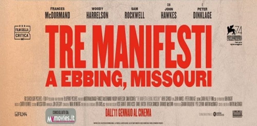 Il quarto film proiettato sarà Tre manifesti a Ebbing, Missouri, con l’attrice premio Oscar Frances McDormand.